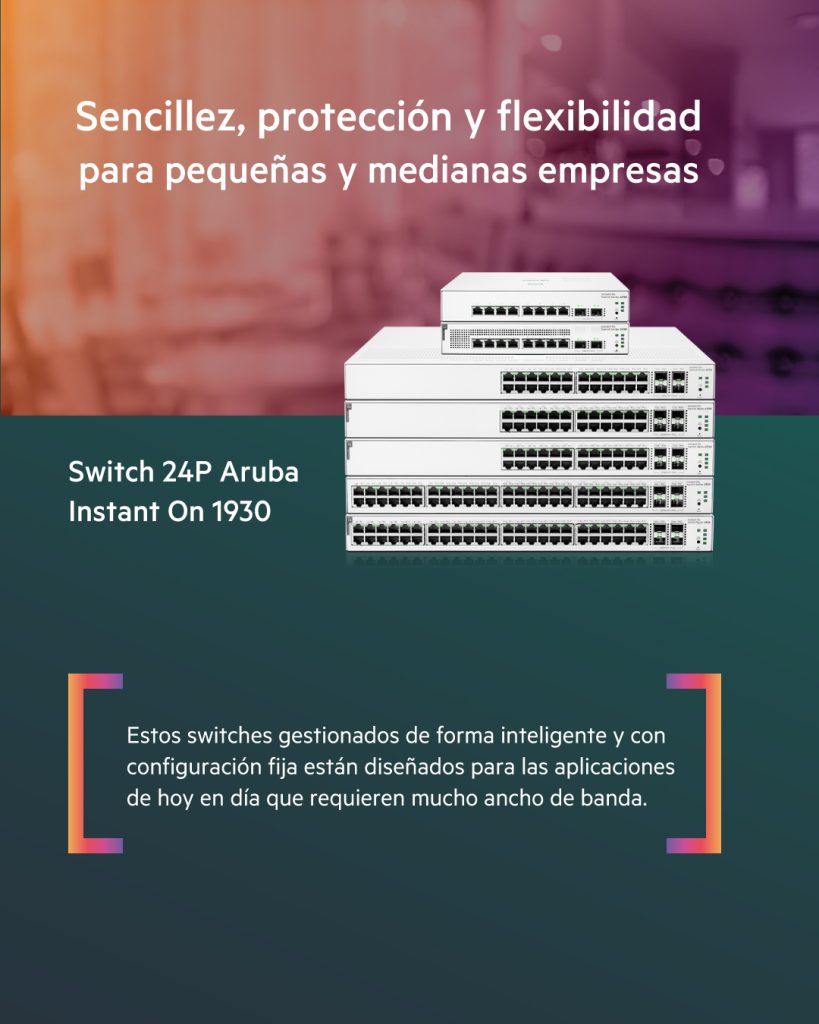 Los switches Aruba Instant On 1930 brindan una gestión inteligente, alto rendimiento y un ancho de banda ideal para las aplicaciones más exigentes. Su configuración simple y su diseño robusto los convierten en una opción eficiente para entornos donde la red es el corazón de la operación.