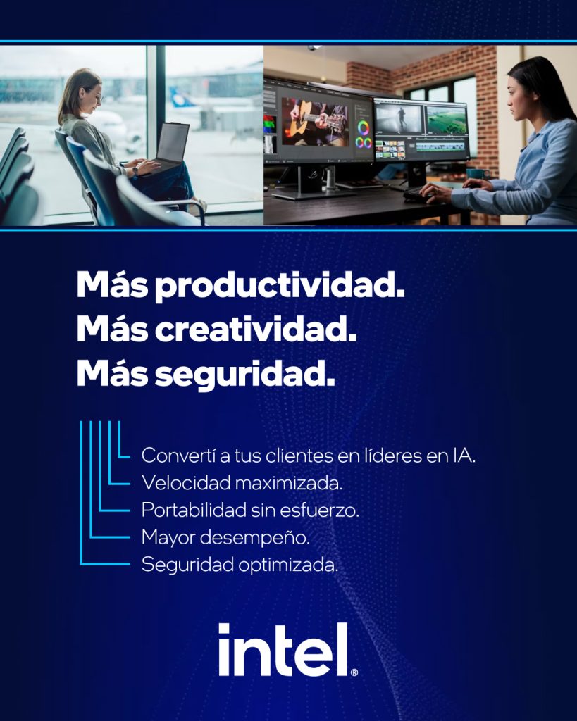Con los procesadores Intel Ultra, las organizaciones pueden convertir a sus equipos en verdaderos líderes en inteligencia artificial, impulsando la innovación y la competitividad. La tecnología ya no es solo una herramienta: es el motor que potencia cada decisión, cada proceso y cada experiencia.